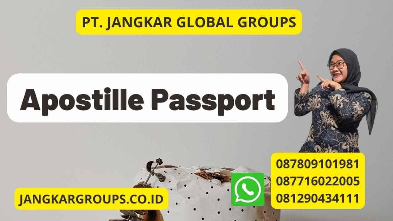 Apostille Passport adalah proses legalisasi dokumen resmi yang di keluarkan oleh negara-negara yang telah menandatangani Konvensi Hague tahun 1961. Maka, Konvensi ini bertujuan untuk menyederhanakan prosedur legalisasi dokumen resmi yang akan di gunakan di negara lain. Dengan kata lain, Apostille ini berfungsi sebagai tanda pengesahan resmi yang menyatakan bahwa dokumen tersebut asli dan sah untuk di gunakan di negara tujuan.