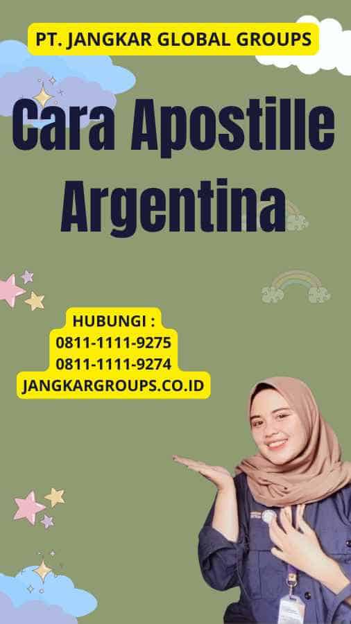 Apostille merupakan proses sertifikasi yang di terima secara internasional untuk melegalkan dokumen resmi di negara-negara anggota Konvensi Den Haag 1961. Argentina adalah salah satu negara yang mengadopsi konvensi ini, sehingga apostille di perlukan untuk berbagai dokumen yang akan di gunakan di luar negeri.