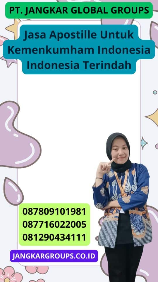 Mencari jasa apostille untuk Kemenkumham Indonesia yang terpercaya? Jasa Apostille Untuk Kemenkumham Indonesia Indonesia Terindah bisa menjadi pilihan yang tepat. Mereka menawarkan layanan profesional dan cepat, sehingga proses apostille dokumenmu bisa selesai dengan mudah.