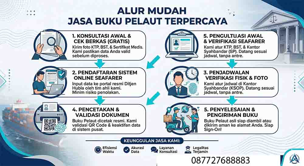 Menyadari kompleksitas dan urgensi dokumen ini, kehadiran Jasa Buku Pelaut profesional menjadi jembatan bagi Anda yang menginginkan efisiensi. Dengan pendampingan yang tepat, proses birokrasi yang panjang dapat di pangkas menjadi lebih sederhana, memastikan dokumen Anda terbit secara legal, tepat waktu, dan terdaftar resmi di sistem pemerintah tanpa mengganggu persiapan keberangkatan Anda.
