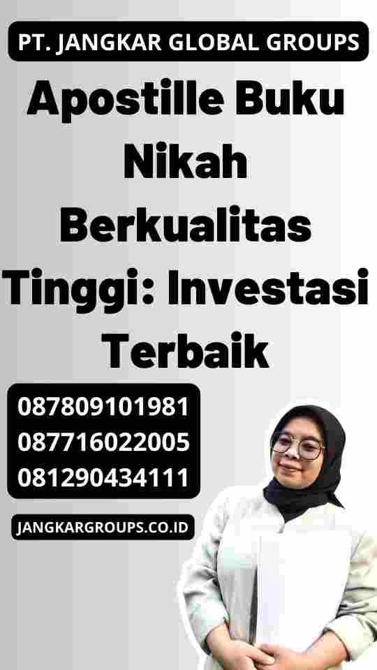 Investasikan masa depanmu dengan apostille buku nikah berkualitas tinggi! Apostille buku nikah terbaik investasi terbaik dari Jangkar Groups di jamin valid dan diakui di berbagai negara. Jadi, kamu bisa tenang dalam menggapai mimpi di luar negeri.