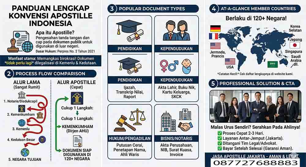 Selamat datang di pusat informasi Jasa Apostille Jakarta. Sejak Indonesia resmi mengaksesi Konvensi Den Haag 1961 melalui Perpres Nomor 2 Tahun 2021, proses legalisasi dokumen internasional menjadi jauh lebih sederhana. Halaman ini akan membahas tuntas segala hal yang perlu Anda ketahui tentang Apostille.