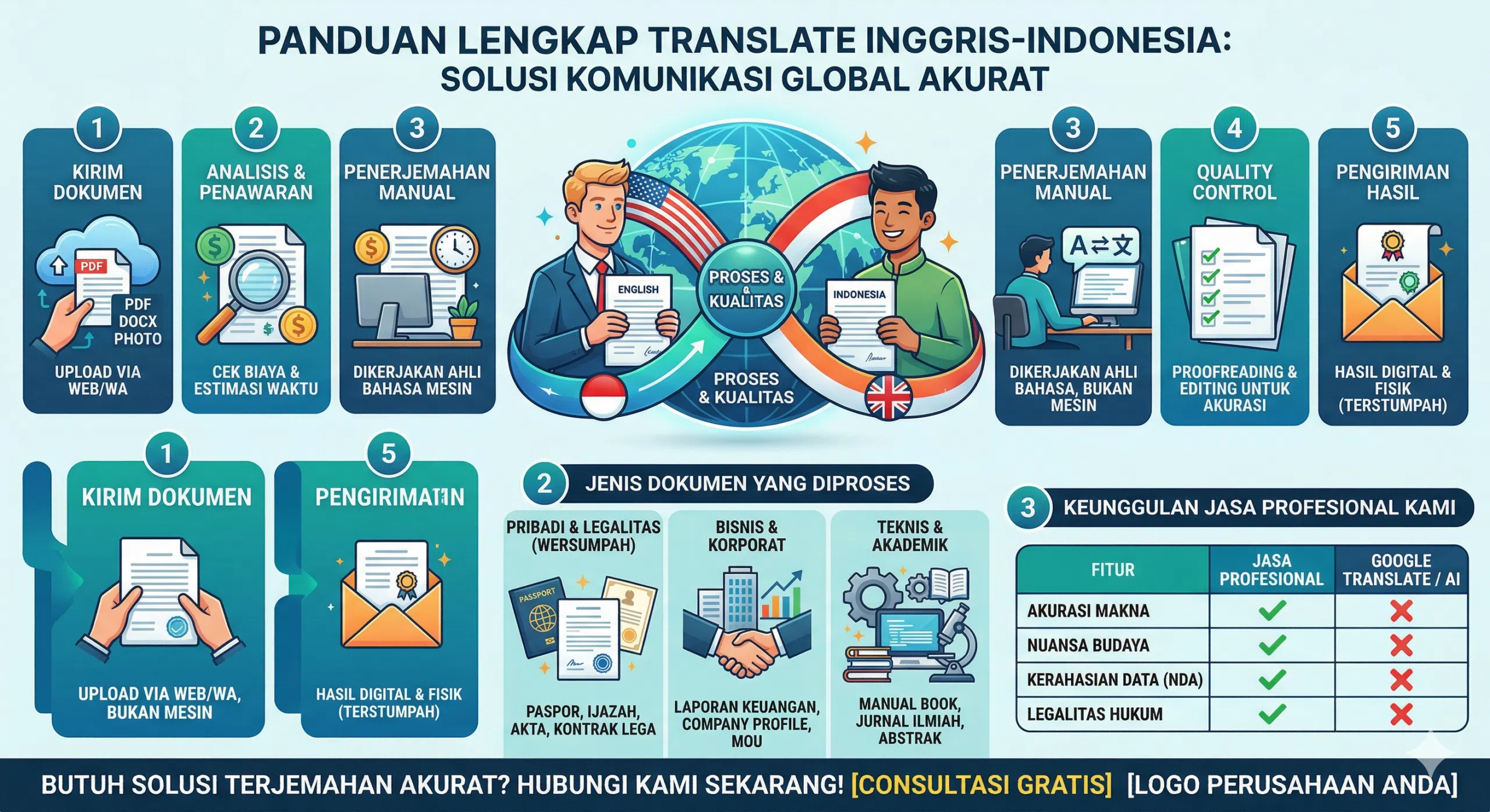 Di kerjakan manual oleh ahli bahasa, bukan sekadar mesin.Kami menghargai waktu Anda dengan deadline yang pasti.Dokumen Anda aman bersama kami (Tersedia opsi NDA).