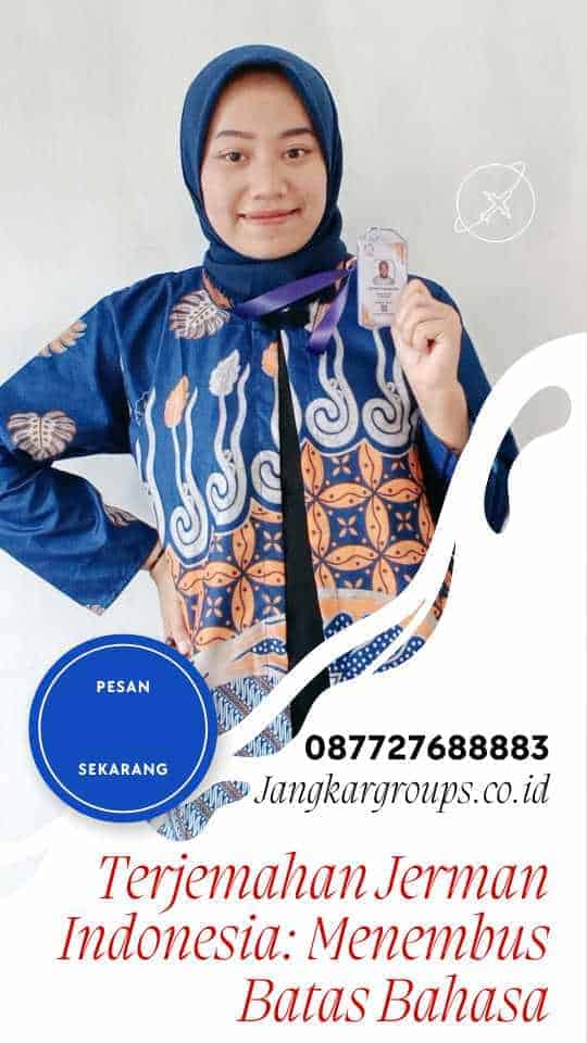Terjemahan dari bahasa Jerman ke bahasa Indonesia memainkan peran penting dalam memfasilitasi komunikasi lintas budaya dan lintas negara. Kemudian, Dengan bantuan Jasa terjemahan yang handal seperti Jangkargroups, akses terhadap informasi dan peluang kolaborasi menjadi lebih mudah. Oleh karena itu, bagi siapa pun yang membutuhkan translate yang akurat dan andal, mengandalkan Jangkargroups adalah pilihan yang bijaksana. Maka dengan demikian, mari kita terus memperluas horison kita dengan berinvestasi dalam komunikasi lintas bahasa yang efektif dan terpercaya.